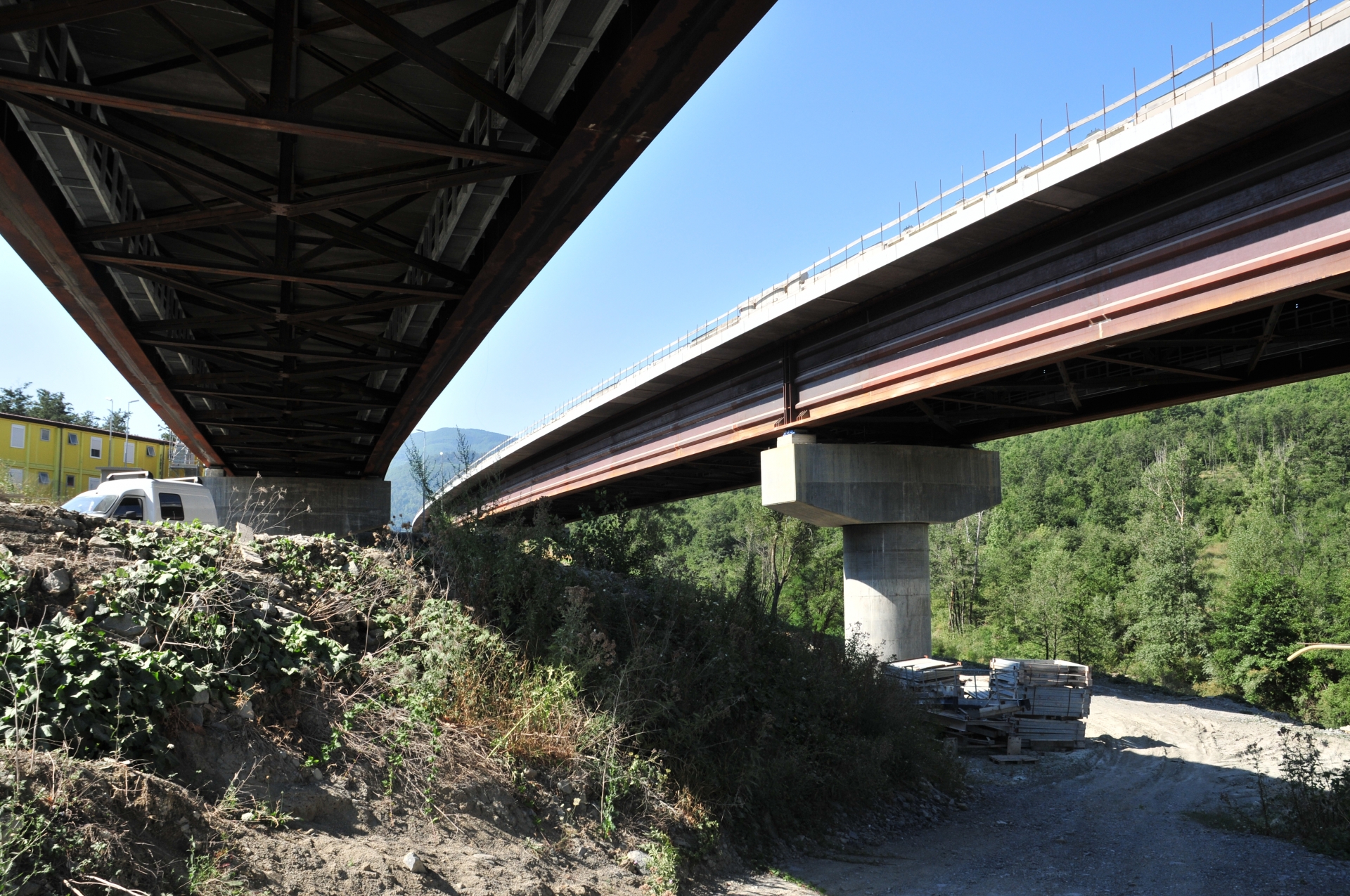 I 2 viadotti “Molino di Setta” (530 m) e “Sparvo” (500 m) sono stati costruiti con un impalcato in misto acciaio-calcestruzzo e dotati di dispositivi antisismici.